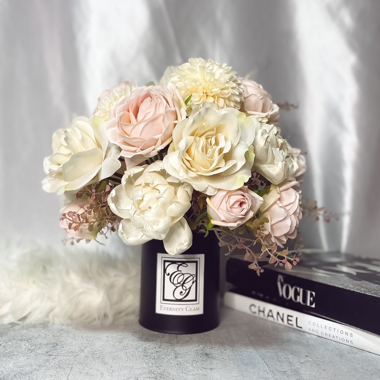 マットブラックの缶に華やかにアレンジされた置き型タイプ。基本はブラックでご用意していますが、お好みでマットホワイトにも変更可能です。